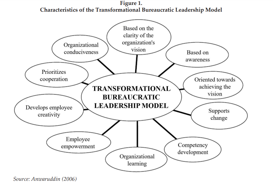 Our analysis of bureaucratic leadership has led us to conclude that the leadership model that should be applied to government organizations is the transformational model, along with its leadership competency model. With the increasingly widespread development of orientation and the high demands for bureaucratic reform, the transformational leadership in bureaucracy is considered needed to overcome the complexity of problems that occur in government due to the weakness of bureaucratic leadership.